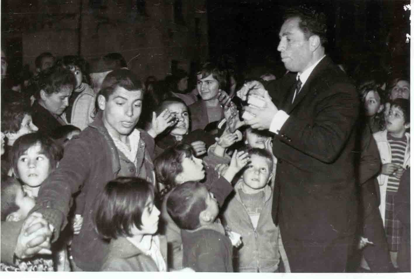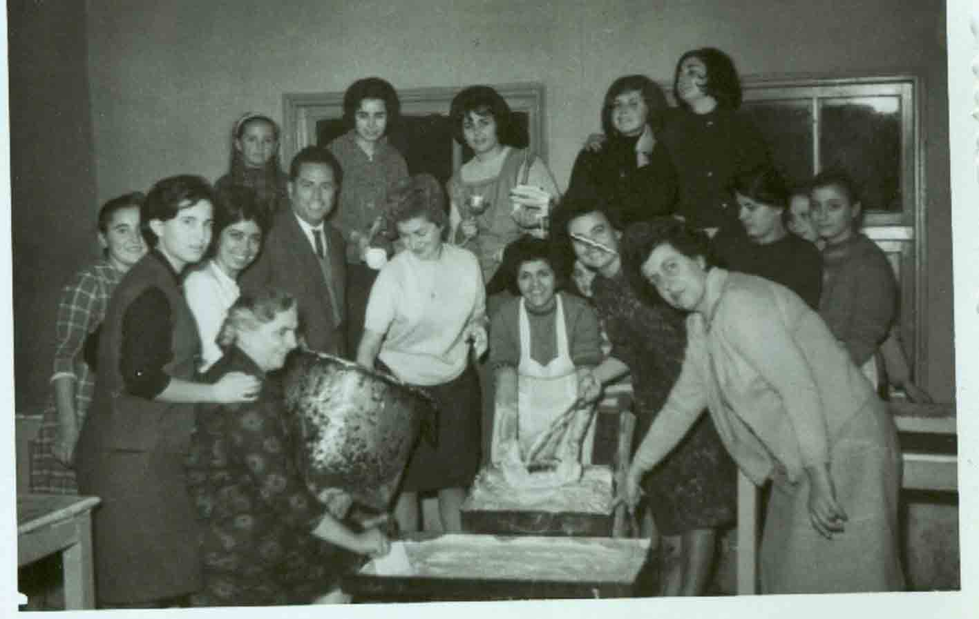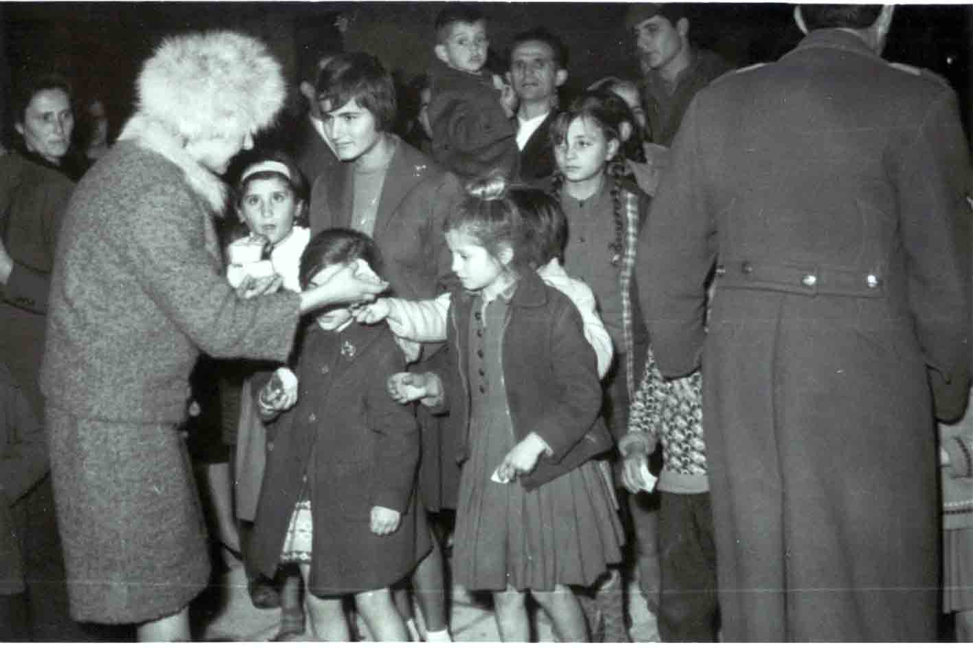 Στην παρακάτω η αείμνηστη Μιράντα Ζούλα- σύζυγος του τότε Δήμαρχου μοιράζει Βασιλόπιτα. Διακρίνονται η Μαίρη Γεωργίου, ο Σεραφείμ Παπασταύρου έχοντας στην αγκαλιά τον γιο του Χρήστο (Ντόμπρα) και άλλοι που δεν αναγνωρίζονται.