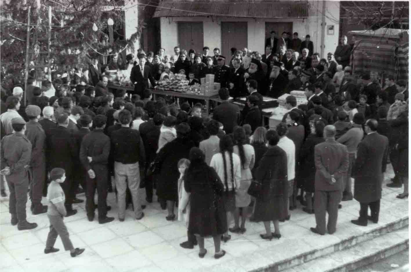 Στην παρακάτω φωτογραφία, πέρα από του ιερείς και τον Δήμαρχο μπορεί να διακρίνει κανείς την Βούλα Καζούρη- Σκάρλου, την Λίτσα Ευαγγέλου (Μπουμπού), τον Λία, τον Γρηγόρη Ζαφείρη κλπ
