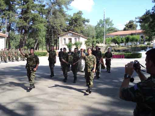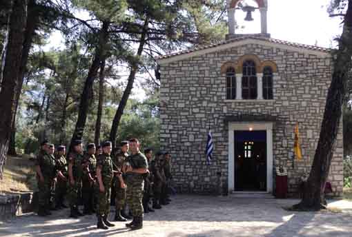 Με το καθιερωμένο τυπικό και τη δέουσα ευλάβεια γιορτάστηκε σήμερα 11 Μάη 2013 η μνήμη του Αγίου Γεωργίου του Τροπαιοφόρου- προστάτη του Πεζικού μας, στο 628τπ Φιλιατών. Μια εκδήλωση χαραγμένη βαθειά στην μνήμη των κατοίκων των Φιλιατών και συνδεμένη με την ευκαιρία της ελεύθερης επίσκεψης τους και της επαφής τους με τα στρατευμένα παιδιά στο Τάγμα μας, το ιστορικό τάγμα του Υπολοχαγού Θωμά Τριάντη.Στην Πύλη μας υποδέχτηκαν… με το χαμόγελο στα χείλη δυο γνωστά στρατευμένα Φιλιατόπουλα.