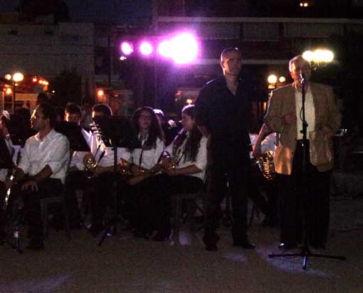 Φιλαρμονική πανδαισία απόλαυσαν οι Φιλιαταίοι το βράδυ της Δευτέρας 22 Ιουλίου 2013, στην κεντρική πλατεία των Φιλιατών, από την Μπαντίνα της ¨παλαιάς¨ ιστορικής Φιλαρμονικής της Κέρκυρας. Με ένα σπουδαίο ρεπερτόριο και μια φανταστική εκτέλεση τα παιδιά της Μπαντίνας και ο Αρχιμουσικός τους Σπύρος Προσωπάρης κέρδισαν τις εντυπώσεις των Φιλιαταίων που τις εκδήλωσαν με ένα ζεστό και παρατεταμένο χειροκρότημα. Την εκδήλωση διοργάνωσε ο Πολιτιστικός Σύλλογος με τον Δήμο Φιλιατών και τίμησε με την παρουσία του ο πρόεδρος της σπουδαίας Κερκυραϊκής Φιλαρμονικής κ. Γιάννης Γραμματικός, ο οποίος αξίζει να σημειωθεί ότι αγαπάει τους Φιλιάτες- τόπο γέννησης του όπου έζησε και τα πέντε πρώτα χρόνια της ζωής του. Την εκδήλωση προλόγισαν ο πρόεδρος του Πολιτιστικού μας Συλλόγου κ. Διονύσης Καζούρης, ο Δ.Σ. κ. Δημήτρης Τσότσης και εκ μέρους της Μπαντίνας ο κ. Γιάννης Γραμματικός ο οποίος αναφέρθηκε με λίγα λόγια στο ιστορικό της ιστορικής Φιλαρμονικής που προεδρεύει τα 14 τελευταία χρόνια και απένειμε αναμνηστικό σήμα της Φιλαρμονικής στους διοργανωτές.