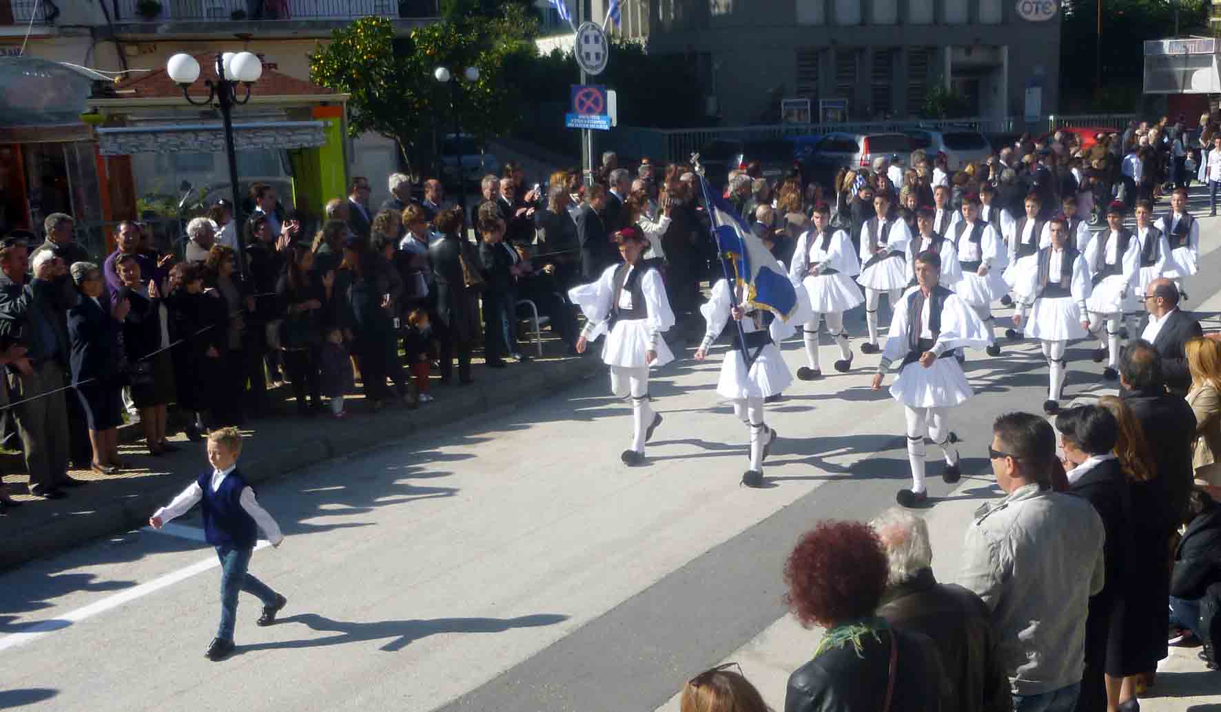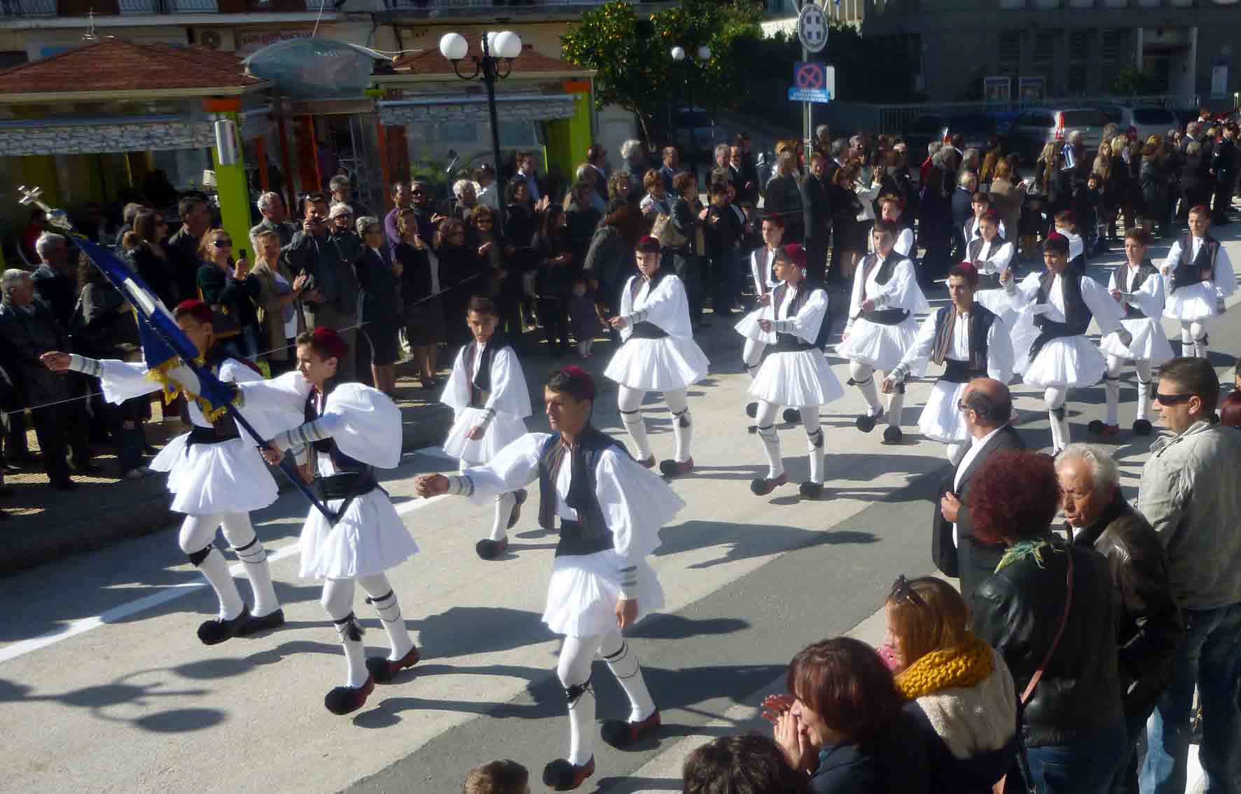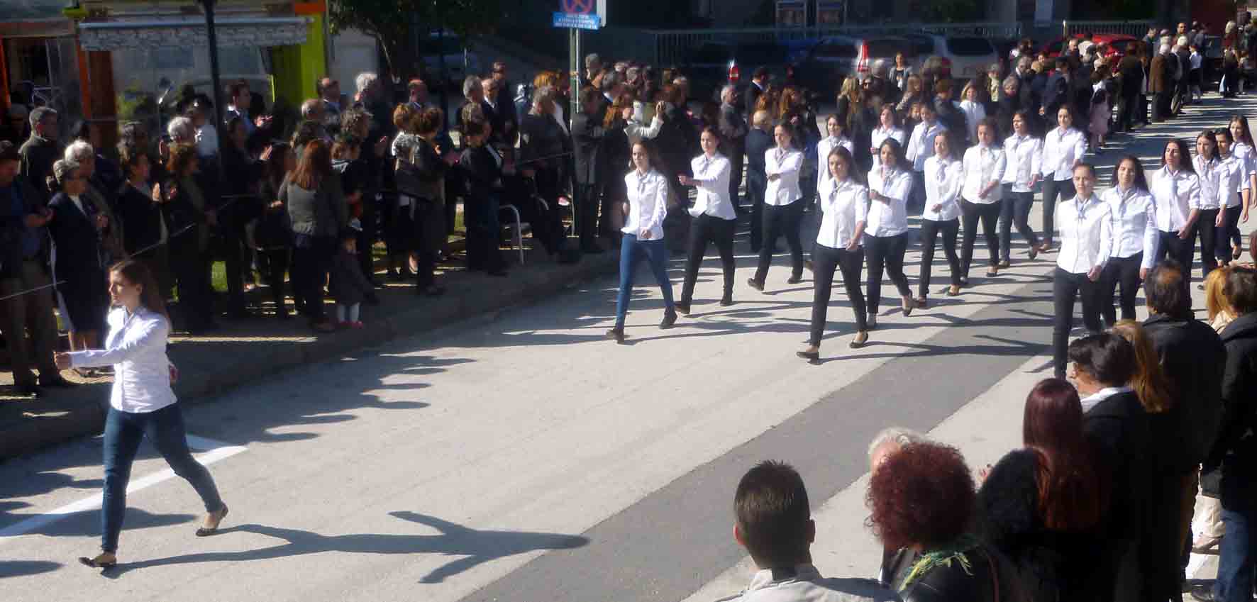 η παρέλαση ξεκίνησε με την Μπαντίνα και ακολούθησε η Μπάντα του Δήμου Φιλιατών