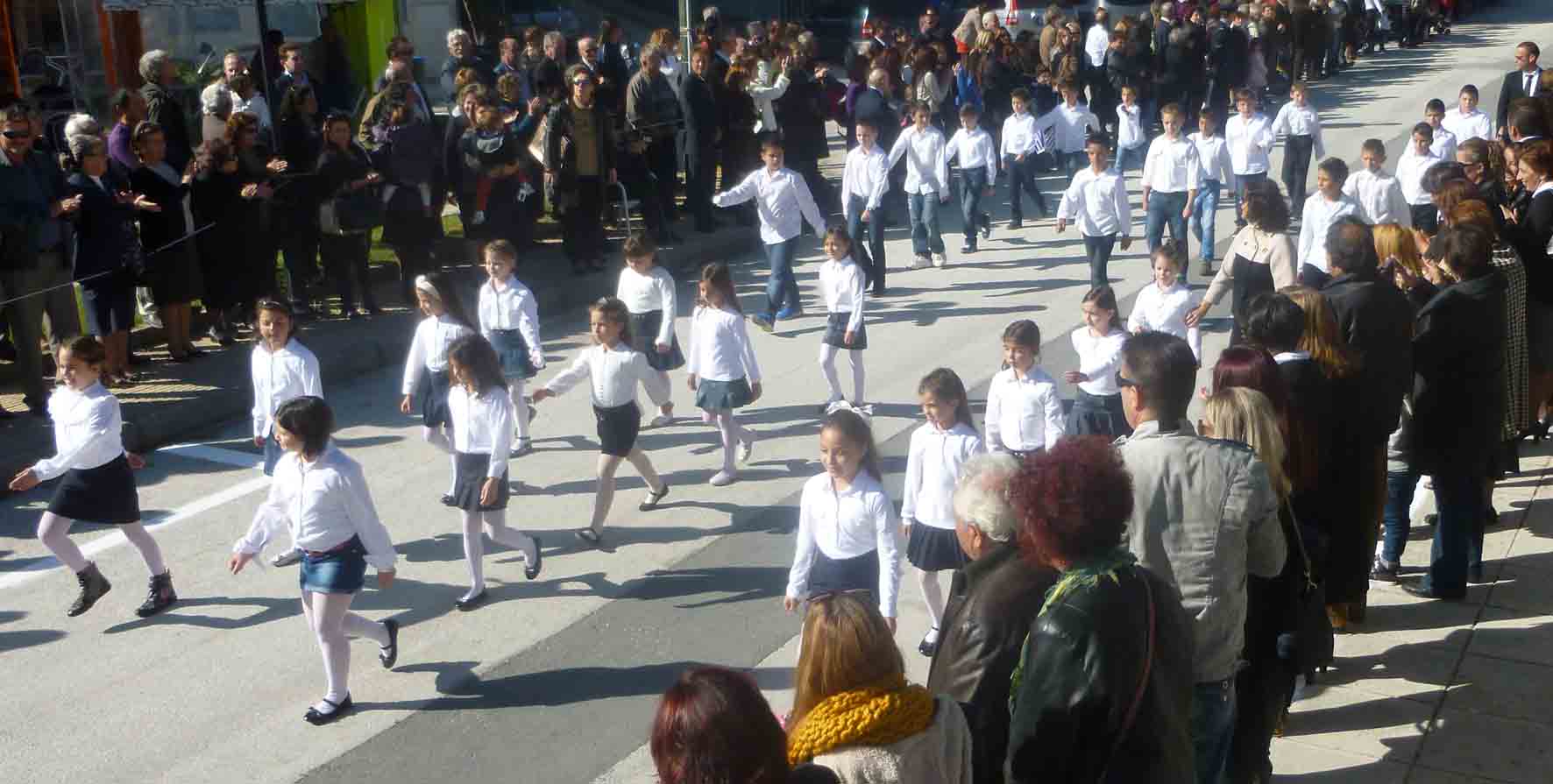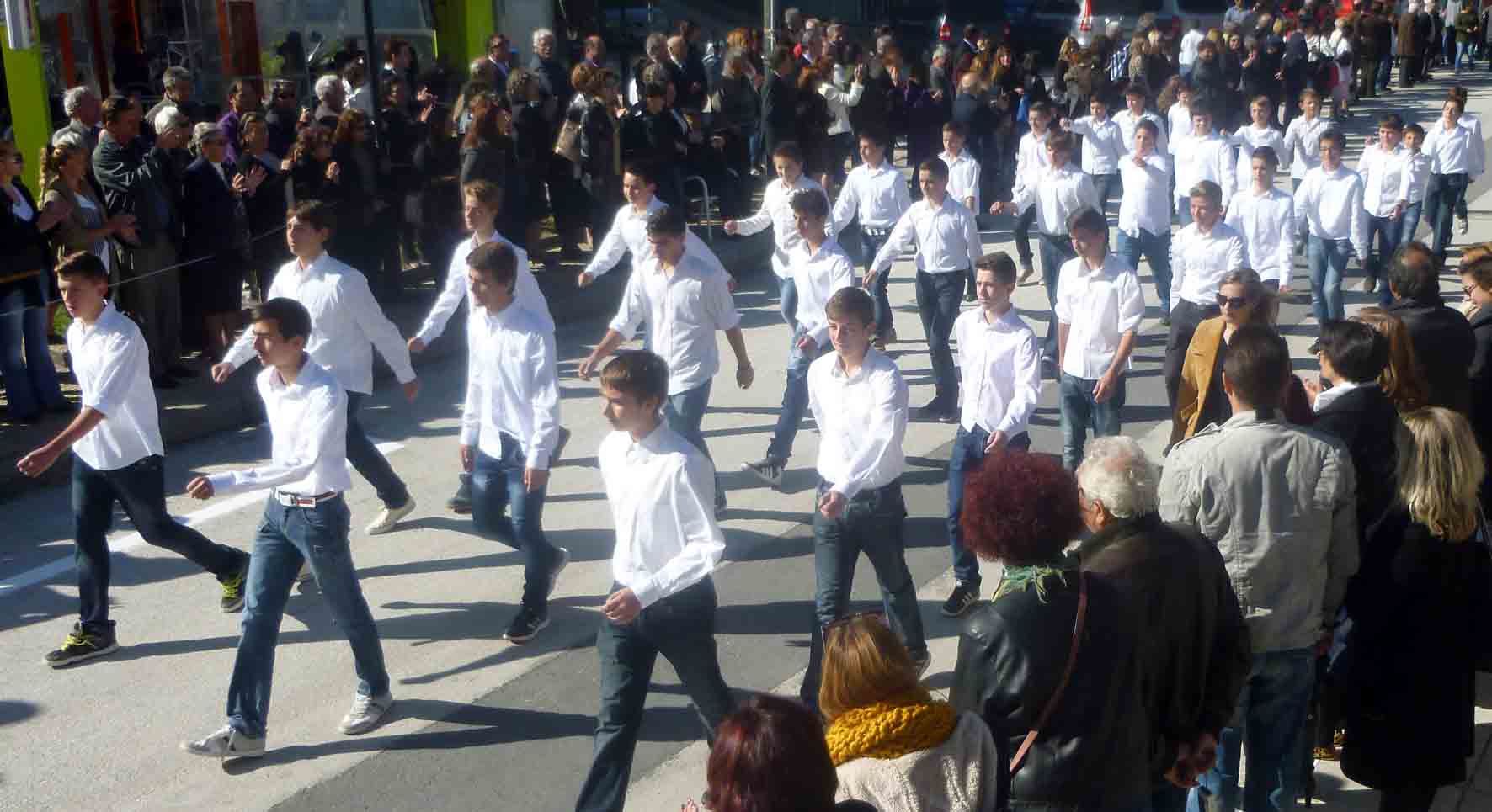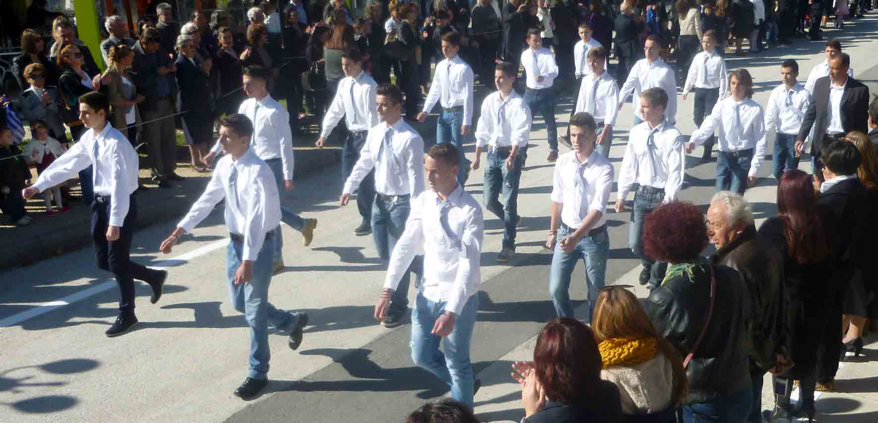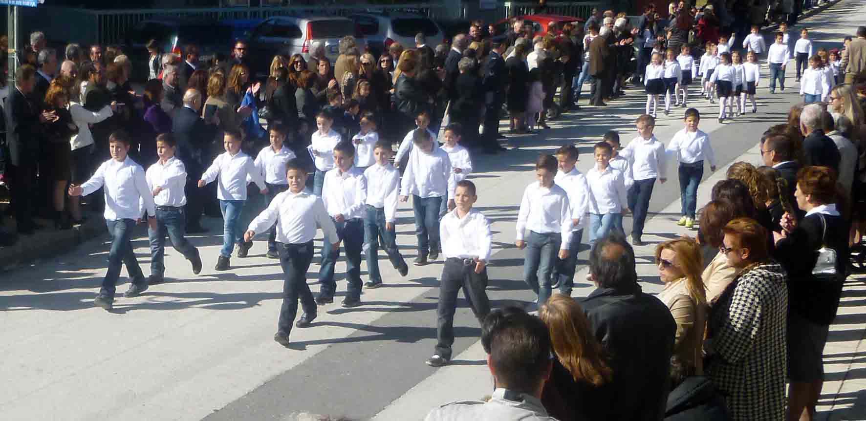 η παρέλαση ξεκίνησε με την Μπαντίνα και ακολούθησε η Μπάντα του Δήμου Φιλιατών