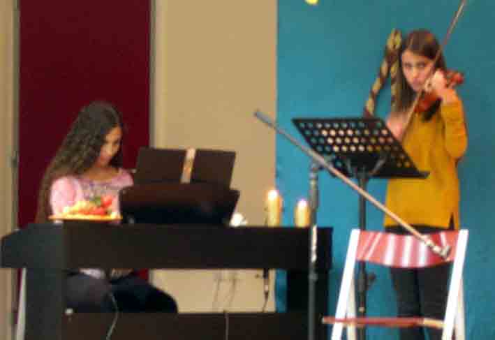 Τα τραγούδια της χορωδίας μας, το ζεϊμπέκικο του Βασιλάκη και της Σταυρούλας, το θεατρικό δρώμενο με θέμα τη λαθρομετανάστευση, αλλά και τα διασκεδαστικά βιντεάκια από τα μέχρι στιγμής ταξίδια των μαθητών μας στο εξωτερικό, καθήλωσαν ολόκληρο το κοινό που κατέκλυσε την αίθουσα εκδηλώσεων του σχολείου μας. Ανάμεσα στο κοινό ο κ. Κατσάρης, εκπροσωπώντας τις δημοτικές τοπικές αρχές, ο κ. Τζόκας από τη Διεύθυνση Β’ θμιας Εκπ/σης, ο κ. Γκάνιας πρόεδρος του Συλλόγου Γονέων και Κηδεμόνων, γονείς, οι μαθητές του Γυμνασίου Φιλιατών, αλλά και οι μαθητές του Γυμνασίου Νεράιδας που επέλεξαν να περάσουν την τελευταία τους σχολική μέρα για το 2014 στο δικό μας σχολείο, τιμώντας μας με την παρουσία τους!