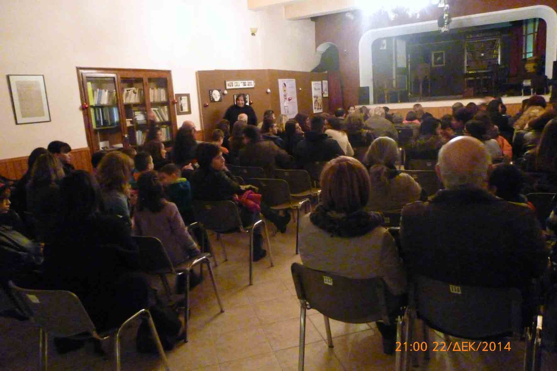 η παράσταση άρχισε μετά το σύντομο χαιρετισμό και τις ευχές απο τον πρόεδρο του Πολιτιστικού Συλλόγου Διονύση Καζούρη