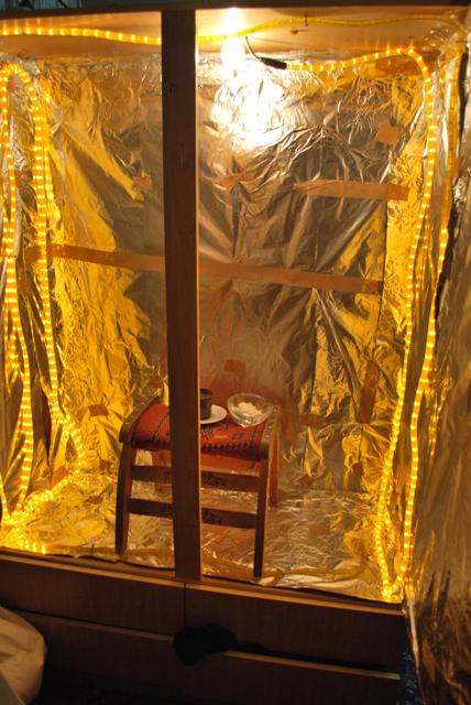 Πίνουμε ζεστό καφέ κι εγώ κοιτάω το χώρο γύρω, αμήχανη. Ο Γιώργος τον έχει διαμορφώσει ώστε να είναι πρακτικός. Το «σπίτι» του, έχει μέχρι και αυτοσχέδια τουαλέτα.