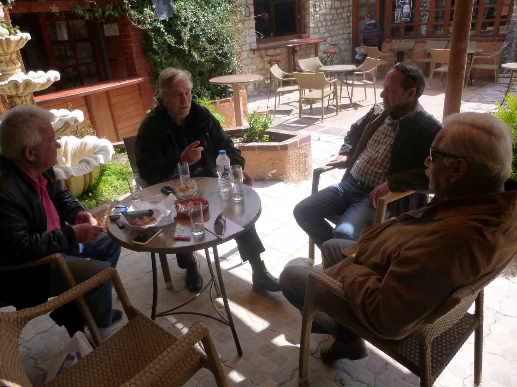 αργότερα καθήσαμε κι έξω… ¨απόλυκε η μέρα¨- τι ωραία εκφραση, τι ωραία παλιά Φιλιατιώτικη παρέα… Βασίλης Σπήτας, Τάκης Κοτσώνης, Κώστας Λούπας του Σταύρου, Μιχάλης (Λάκης) Παπαφωτίου…