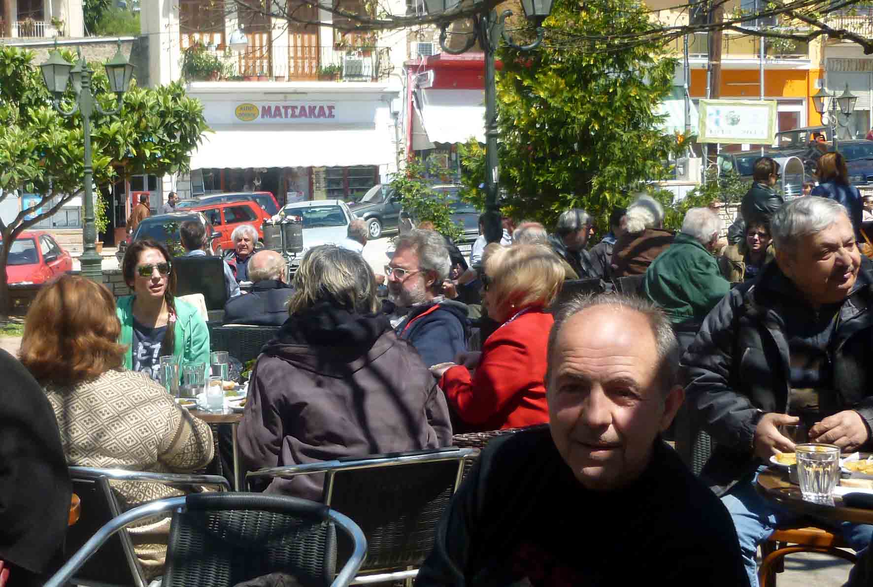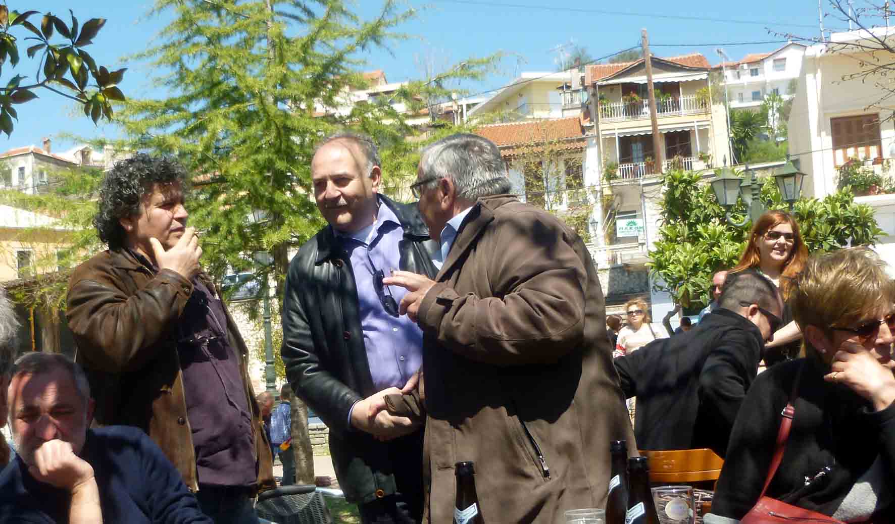 Και βέβαια ο Παύλος ο Σπήτας, ο Γιώργος Μαρκατσέλης και στο βάθος μαζί με την κόρη του ο αγαπητός μας καθηγητής Θωμά Ντάγκας- που άργησε να κατέβει πλατεία και ψάχνει καρέκλα…