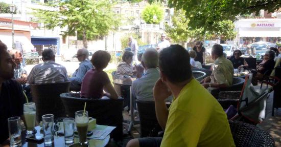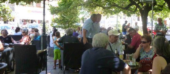 Στη ΣΥΓΚΛΗΤΟ συγκλητικοί και μη απολαμβάνουν τη δροσιά της φλαμουριάς, όπως και στο ΚΑΦΕΝΕΙΟ των Μιχάλη και Έλλης κλπ μαγαζιά της πάνω πλατείας…