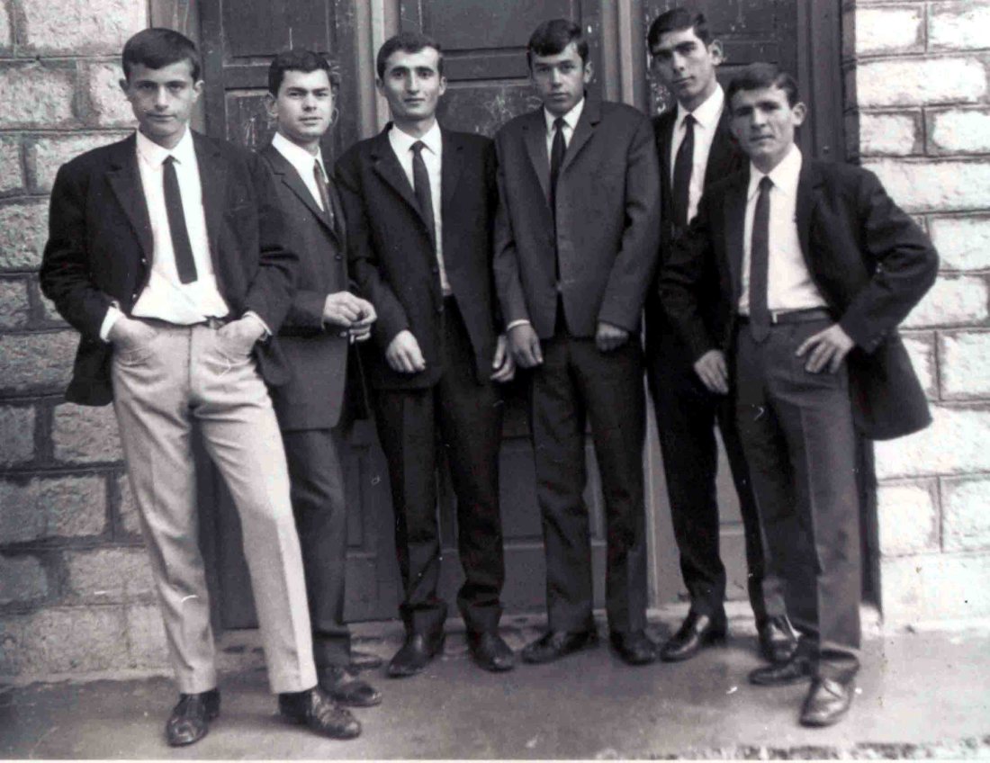 κάπου το 1970, απο αριστερά: Χριστόφορος Θεοδώρου, Αντώνης Γκογκορώσης, Αντώνης Κωνσταντίνου, Σταύρος Στράτης, Αλέξης Μαστορίδης, Γρηγόρης Βασιλείου- απέναντι απο το Φωτογραφείο Στεφανίδη