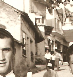 Δεξιά από το ομορφόπαιδο της φωτογραφίας εκεί που διακρίνονται 3-4 άτομα ήταν ο φούρνος του Γιώρη Μαντζάρα, στην ανηφόρα από την κάτω στην πάνω πλατεία. Τη φωτό  τράβηξε ο Νίκος Σούφλας το 1969, τον ανιψιό του φαίνεται κι ο φούρνος…