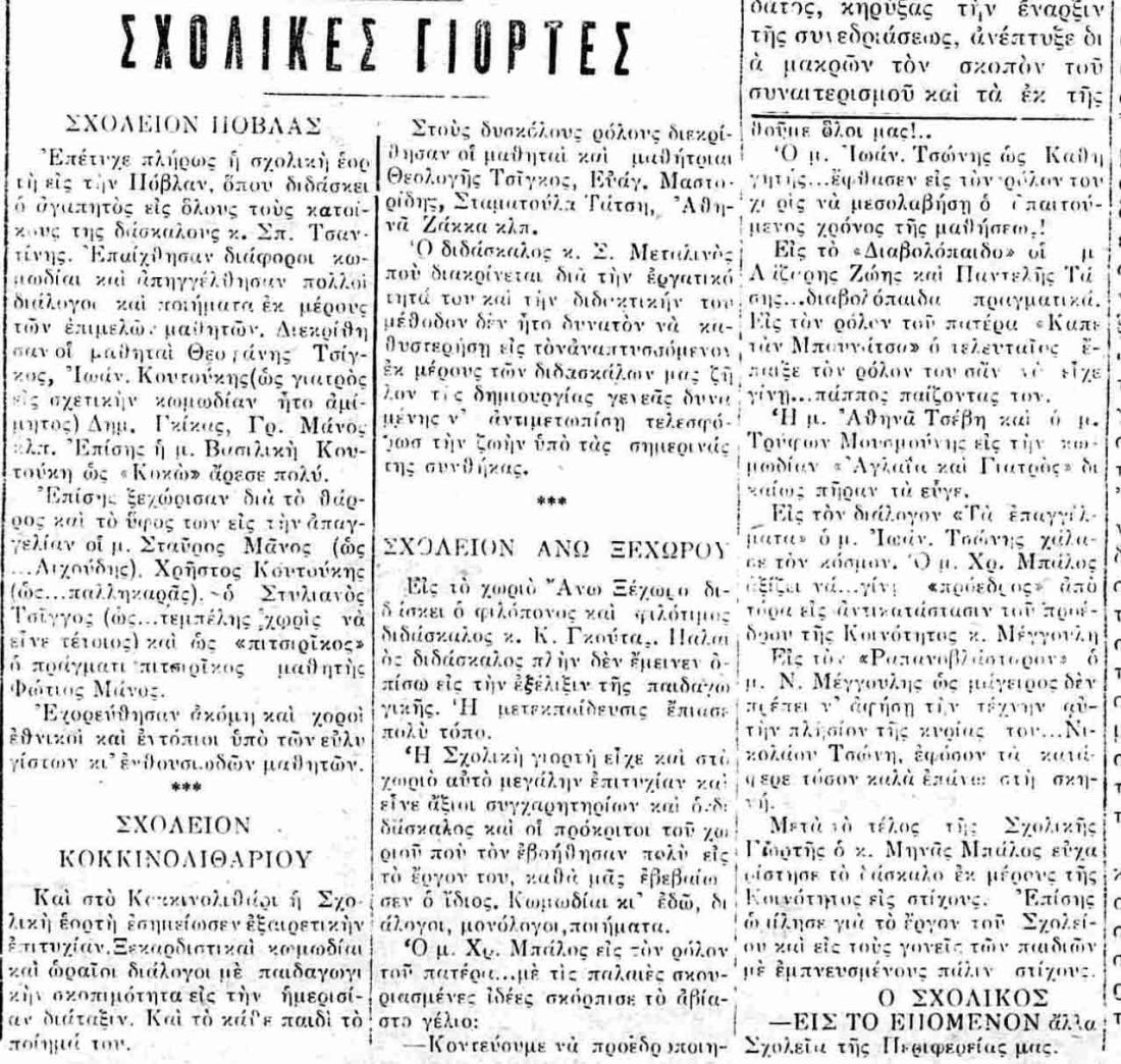 Φιλιάτες 1934, σχολικές γιορτές στην Πλεσίβιτσα και το Φοινίκι