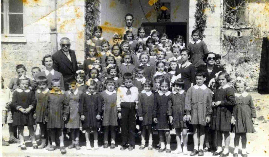 απο το πάνω δημοτικό σχολείο- δεκαετία ’50-, ο δάσκαλος στην κορυφή είναι ο Κώτσης, οι άλλοι δυο δασκαλοι με τα γυαλιά ο Κορδής και η Κορδή- άλλους δεν γνώρισα αν και μια στο κέντρο μοιάζει με την Κούλα του Τσούβαλου…