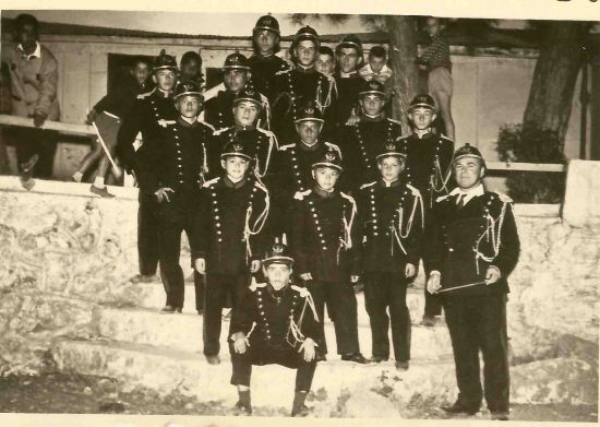Ο χώρος είναι εκεί που είναι σήμερα το Ηρώο, πίσω από το Άγιο Δημήτριο. Το μόνο που δεν έχει αλλάξει είναι τα πεύκα- υπάρχουν και σήμερα. Τα σκαλιά που αποτέλεσαν το βάθρο για τη φωτογραφία, οδηγούσαν σε μια αυλή και σε ένα κτίσμα από πισόχαρτο παλιά Λέσχη Αξιωματικών που εκείνο τον καιρό φιλοξενούσε την Φιλαρμονική. Τώρα, από τους εικονιζόμενους, στην πάνω σειρά από τα μεγαλύτερα παιδιά, γνώρισα τον Τάκη Πατσούρα, Αχιλλέα Μαντζούκη, Νίκο Γεωργόπουλο, Σάκη Αγαρτζίδη, Βαγγέλη Μπούκουρης. Από τους κάτω, τους μικρότερους, διακρίνονται ο Μάρκος Παπαφωτίου, Γιάννης Γκαρής, Σωτήρης Κολιούσης, Μηνάς Πασχόπουλος, Σόρογκα;, και μάλλον ο Σπύρος Τσέκας είναι ο καθιστός. Δάσκαλος ο Κερκυραίος Πλασκατσοβίτης. Πάνω αριστερά, πάνω από το κεφάλι του Αγαρτζίδη μόλις και διακρίνεται το κεφάλι του αείμνηστου Πάκου… Όποιος γνωρίσει κι άλλους ας τα γράψει…