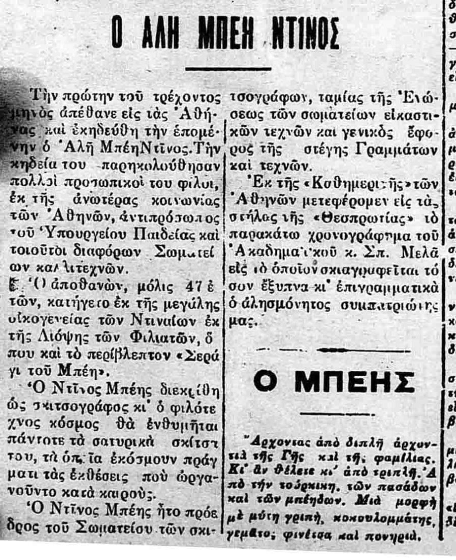 Απο την εφημερίδα ΘΕΣΠΡΩΤΙΑ του Γ. Βουγίδη, φύλο του 1938.