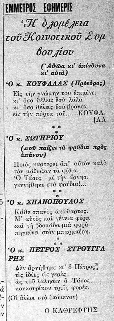 απο την εφημερίδα ΘΕΣΠΡΩΤΙΑ του Γεώργιου Βουγίδη- πρόεδρος της κοινότητας Φιλιατών τότε ηταν ο Χρήστος Κουφάλας
