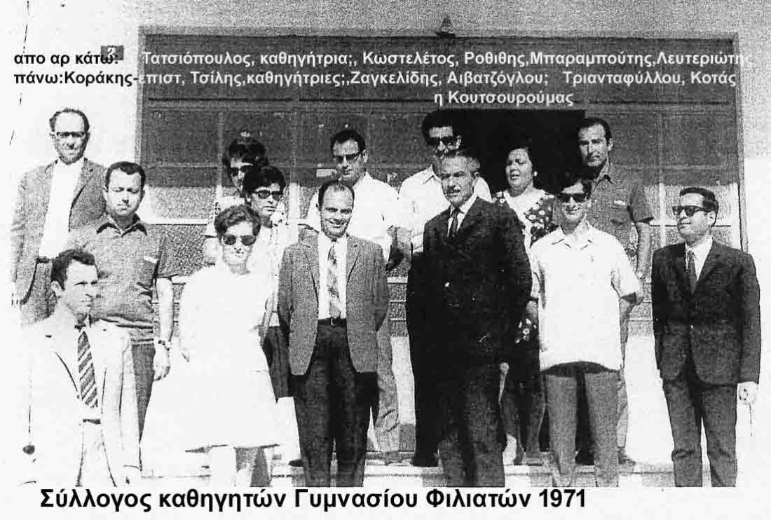 Ο Γιάννης ο Μπαραμπούτης- ο Τζον, αγαπάει το Φιλιάτι που υπηρέτησε από το 1969- 1974. Ήταν ένας από τους εκατοντάδες καθηγητές που δίδαξαν στο Γυμνάσιο Φιλιατών, τη δεκαετία του ’70. Εξαίρετος άνθρωπος, σπουδαίος καθηγητής Αγγλικής φιλολογίας και προικισμένος μουσικός- άφησε τις καλύτερες εντυπώσεις και προσπαθεί και έχει επαφές με πολλούς παλιούς του μαθητές. Μου έστειλε μερικές ακόμη φωτογραφίες του από τα χρόνια εκείνα, μου έστειλα και χαιρετισμούς και φιλιά σε όλο το Φιλιάτι…