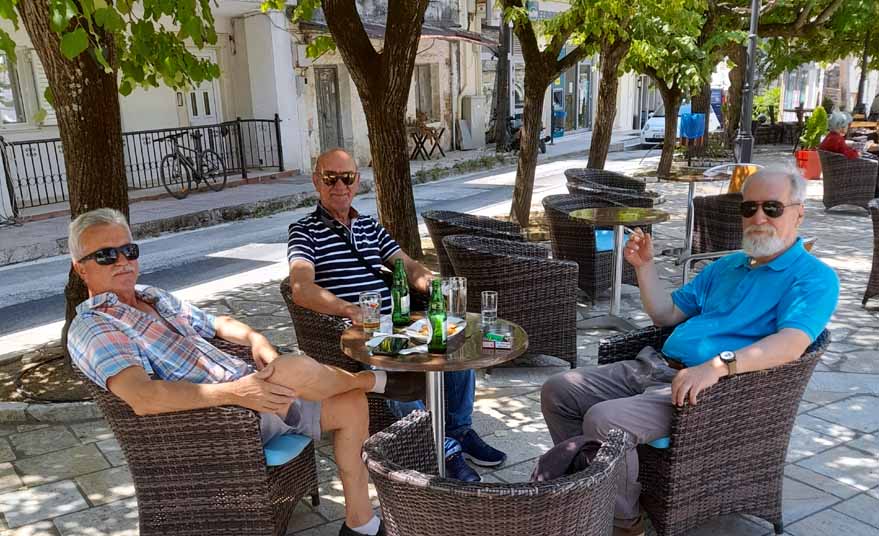 Με τις υπέροχες φλαμουριές και τον καλό τους ίσκιο καθώς και τους λίγους και καλούς φίλους, Λεωνίδας Ταφέκης- προφανώς υποψήφιος δήμαρχος και Χρήστος Καπλάνης- ο πλέον διαπρεπής Ηπειρώτης εικαστικός των ημερών!