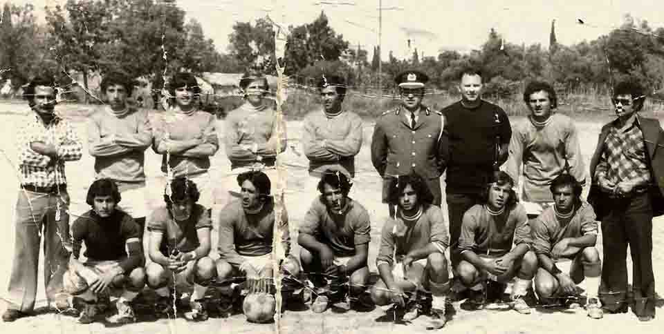 Τα ονοματα από τη φωτογραφία με την ομάδα: Όρθιοι, από αριστερά: Σπύρος Νέτης (Λιαπένης), Γιώργος Ράπτης (Λώλος), Φώτης Σιούτης, Κώστας Σωτηρίου (Κόκκινος), Παύλος Λούμπας, αστυνόμος, Θωμάς Γκάνιας, Βαγγέλης Τσάτσας (Αρωματζής), Σπύρος Νάτσιος (Ταμπής). Κάτω: Παύλος Μαρκατσέλης;, Γιώργος Κουφάλας;, Κώστας Τσίτος (Τσιμπούκας), Παύλος Λάζος, Παναγιώτης Στασιάς (Τσούπης), Γιάννης Λούμπας (Νάνας), Βασίλης Στασιάς (Πατσιάς).