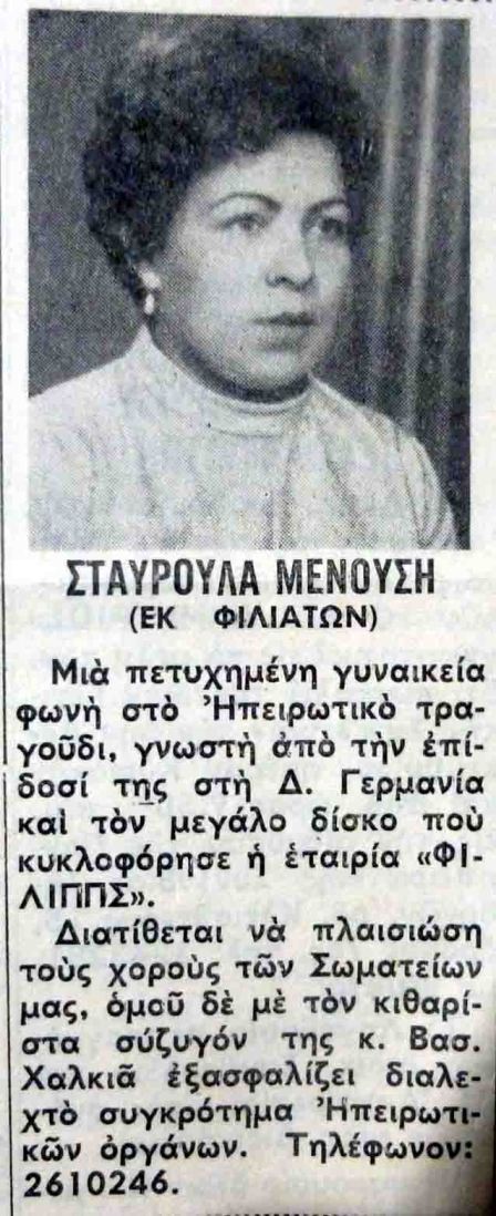 Τρίτο μέλος της οικογένειας η Σταυρούλα, δημοτική τραγουδίστρια με καριέρα στην Αθήνα κλπ.