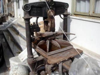 Ένας πρακτικός μηχανικός που συναρμολογεί το πιεστήριόν μας, που αναβίβασαν επί των ώμων μάρτυρες οι συγκάτοικοί μας… στα κατσάβραχα Φιλιατών. – Η Κοινωνία σύσσωμος εκδηλώνει το ενδιαφέρον της. – Οι αδελφοί Κοτσώνη ευεργέται της «Θεσπρωτίας»