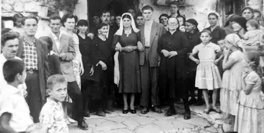 7Νύφη η Γούλα ,τή κρατάει ό αδελφός της ο Μάρκος ,αριστερά της ή βάβω ή Μάρκοβα,καί δίπλα της η Μήτσιο μάνα τής νύφης,δίπλα της ή Μάρκο περιστέρενα από τού Τσαμαντά συγγενισά τους,ο Αντώνης Αλέξης Τσίγκος ,ο Γρηγόρη Ράφτης ,καί ο Γιώρη Κίτσος,όλοι αυτοί είναι δεξιά τής νύφης,αριστερά όπως βλέπομε τή φωτογραφία,από τήν άλλη πλευρά γνωρίζω τή Χρυσάνθη τού βάβη πίσω στό βάθος . Η μαμά μου με τα χεράκια στη μέση Αλεξάνδρα Ζήκου Βογιατζόγλου. Ο Σπυρος Ραπτόπουλος αναγνώρισε τον μικρό νεαρό αριστερά κ είναι ο Νικόλαος Αθαν Μανος ( Νικολασιολής), ανάμεσα από Γούλα κ Μάρκο είναι ο αδερφός τους ο Χρήστος Πανταζής,πίσω η Αντιγόνη σύζυγος Νικολάου ΤΖΙΓΚΟΥ,η γιαγιά είναι η Τσιαβοδασκαλίνα μάνα του Γρηγόρη Ράφτη,Αγγελική Φωτ Μαυρομύτη,το κοριτσάκι η Αλεξάνδρα Βαγ Ζηκου ( Κάντα) η Παπαμηνέσια με το παιδάκι αγγαλιά κ πίσω η Αφροδίτη ΚΟΥΤΟΥΚΗ!