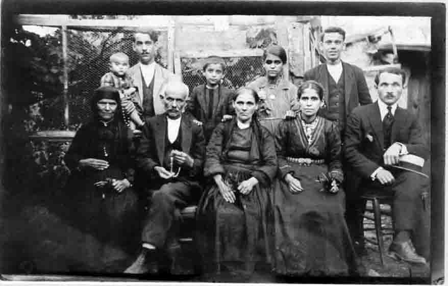 Οικογένεια Γούλα- αρχές του 1900, ο άκρη δεξιά είναι ο Μήτρος Γούλας (από τις παλιότερες Φιλιατιώτικες φωτογραφίες που έχουμε- ίσως υπάρχουν κι άλλες αλλά οι ιδιοκτήτες τους προτιμούν να τις φάει ο σκόρος κι λησμονιά)αρχείο Βασ.Γούλα