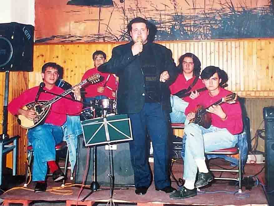 Ένα μουσικό σχήμα της δεκαετίας του ’90; Από αριστερά στο μπουζούκι Τόλης Λούπας, στην Ντράμς Γιώργος Τσέλας, Τραγούδι Λάμπρος Παπαδόπουλος, Κιθάρα ; και Μπουζούκι Μίμης Στάθης