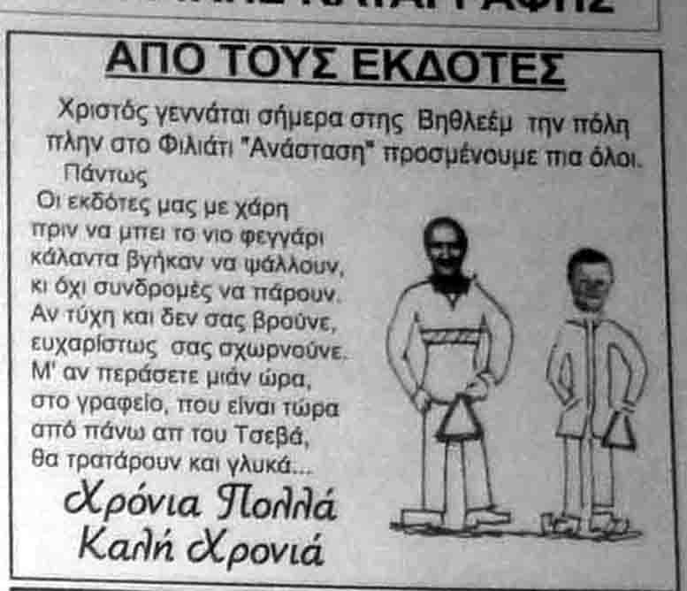 Ιστότοπος για τους Φιλιατες και οχι μονο- με νέα και παλιά, ειδήσεις και σχόλια, λαογραφικά και φωτογραφικά θέματα και την εφημεριδα μας ¨τα ΝΕΑ των Φιλιατών¨ σε ηλεκτρονική μορφή