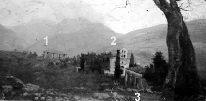 Μια προπολεμική φωτογραφία από το λόφο Στέρα προς τα ανατολικά, δείχνει το 1Νοσοκομείο, 2 Αγία Τριάδα και 3 το σπίτι του Αλή Ντάμα- δωρητή του οικοπέδου που χτίστηκε η Αγία Τριάδα!