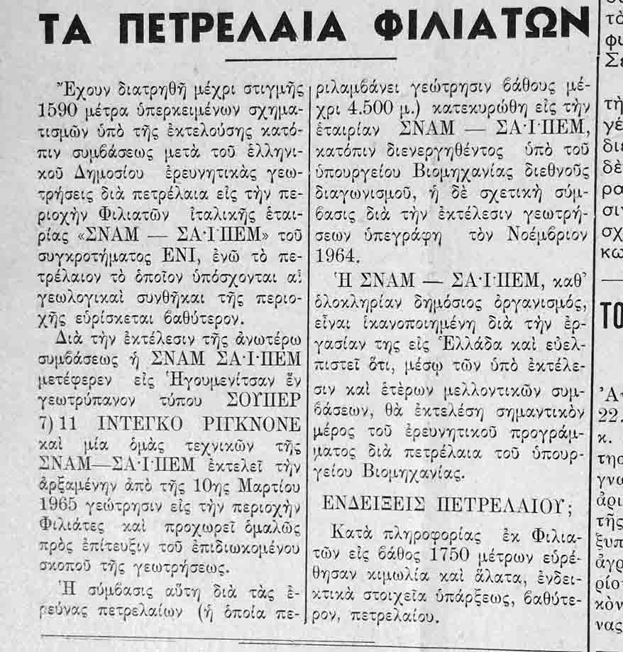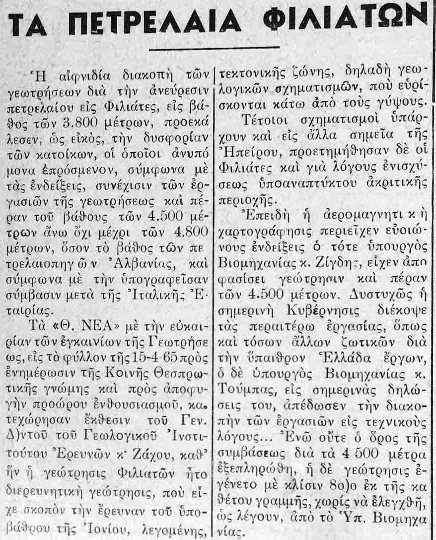λίγα απο την εφημερίδα ΘΕΣΠΡΩΤΙΚΑ ΝΕΑ του 1965