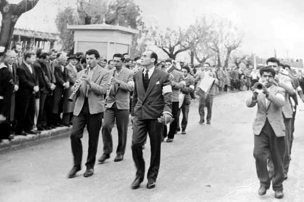25η Μαρτίου 1960 από το αρχείο του κυρίου Αντωνίου Καβαδία ο οποίος διακρίνεται πίσω από τον αρχιμουσικό με εφωνιο . Αρχιμουσικός τότε ο κύριος Δημήτριος Κουβάς…