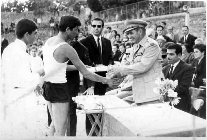 τελικά του απονέμη το έπαθλο ο διοικητής του 628τπ, ο Δημ. Νταλιάνης, υπο το βλέμμα μέσα απο τα γυαλιά του Κοτά, ενώ πίσω απο τον στρατιωτικό είναι ο δήμαρχος Πίπης Φραγκίσκος. Πίσω απο τον Σορομάνη νομίζω είναι ο Γιώργος Χαμπίμπης- αδελφός του Αποστόλη του Γυμναστή