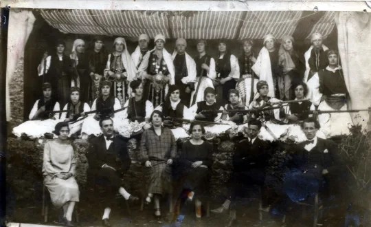 Είναι η παλαιότερη φωτογραφία Θεατρικής παράστασης στο Φιλιάτι. Την εκδήλωση διοργάνωσε το ΔΙΔΑΣΚΑΛΕΙΟ Φιλιατών, το οποίο ήταν κάτι σαν Ακαδημία και έβγαζε δασκάλες- νηπιαγωγούς, λειτούργησε απο το 1926 έως το 1936 με δ/ντρια την Σουζάνα Ζαμπίρη. Μεταξύ των απόφοιτων ήταν και οι: Αλίκη Οικονόμου Βενέτη, Νίκη Πασχόπουλου- Αγαρτζίδη, Μαγδαληνή Μαρκατσέλη, Ευφροσύνη Γούση- Κομιανού από τη Φανερωμένη, Τερψιχόρη Τσόγκα από τη Σαγιάδα σύζυγος Βασιλείου Μικρούλη, Δημητρούλα Ντέντε από του Τσαμαντά σύζυγος του δάσκαλου Βασιλείου Μάκκα, Ευγενία Τσιροπούλη από το Φιλιάτι κόρη του Λάμπρου Τσιροπούλη, Κούλα Στεργίου από το Πλαίσιο, Ελένη Κούλη από το Πλαίσιο, Θεοφανώ, Τσανακλίδου Μαρίκα, Κοντυλένια Βασιάδη από το Φιλιάτι, Γιαννούτσου από το Πλαίσιο, Κλεονίκη Γώγου από του Τσαμαντά μητέρα του δάσκαλου Γεράσιμου Γώγου, Ευγενία Κύρκου συζυγος Λεωνίδα Στολάκη, Ελένη Σούλη από του Τσαμαντά σύζυγος του Κυράτση, Περσεφόνη Γάτου από το Γηρομέρι και άλλες που δεν γνωρίζουμε ονόματά και θα θέλαμε βοήθεια ή και διόρθωση, σε πιθανά λάθη μας…