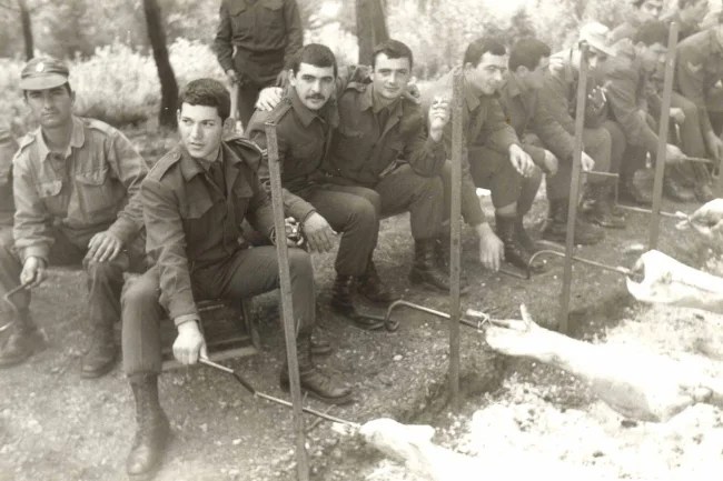 Εκεί τα φανταράκια είχαν στρώσει τραπέζια με ψητά, κρασιά, αυγά και κουλούρια κι ο κόσμος έπαιρνε κι έτρωγε κι έπινε. Τα μεζεκλίκια ήταν σε αφθονία και με την φτώχια που είχε ο κόσμος κάποιοι έβαζαν μεζέδες και στις τσέπες… Κάποιες φορές είχαν και κλαρίνα και χόρευε ο κόσμος. Είναι γεγονός πως ήταν μια πολύ καλή γιορτή αυτή που γίνονταν στο τάγμα του Αϊ Γιωργιού, έφερνε τον κόσμο κοντά στα στρατευμένα παιδιά του, οι παλιοί σίγουρα την θυμόμαστε με νοσταλγία. Στη φωτογραφία με τα φανταράκια που φέρνουν γύρω τις σούβλες, πρώτος ο Κώστας Μητσιάνης- από την Νάουσα, που είχαμε την τύχει να γνωρίσουμε και να μας αφηγηθεί ιστορίες από την θητεία του στο 628τπ Φιλιατών- να είναι καλά και να θυμάται τα καλά από το Φιλιάτι, όπως κι εμείς.