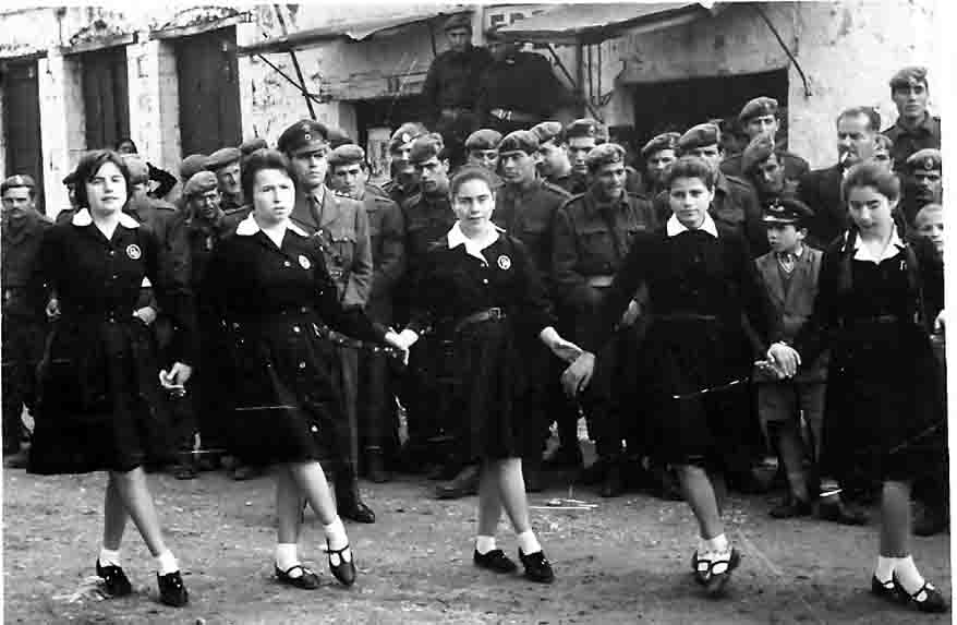 χοροί στην πάνω πλατεία την δεκαετία του ’60. Στην 1η φωτογραφία μαθητριες του Γυμνασίου- σέρνει το χορό η Γεωργία Πατσούρα ακολουθεί η Σιολή κλπ. Πλάκα έχει η φανταρία απο πίσω. Στην άκρη ένας πολίτης με το τσιγάρο στο στόμα- είναι ο Νταής, πατέρα του Νάκη, Πάνου κλπ. Επίσης ένα Γυμνασιόπαιδο και στην άκρη άκρη μια φατσούλα που μοιάζει με τον Σπύρο Σταύρου (Ταβαντζή)