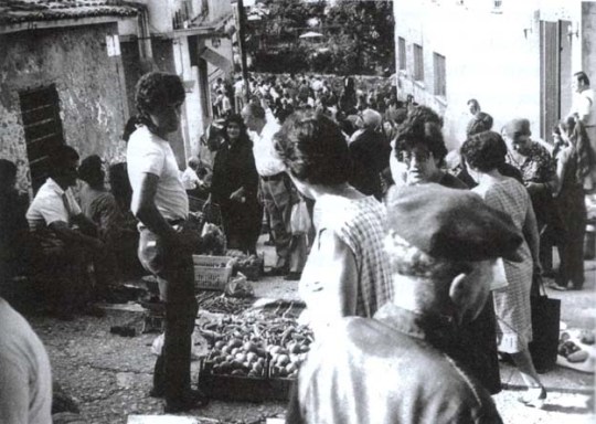 μετά το 1970 το παζάρι γινόταν στους δρόμους πέριξ του τοτε δημαρχείου. η φωτογραφία είναι του 1981 και την ανάρτησε ο κ. Βασ. Χολέβας