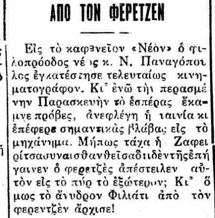 απο την εφημερίδα ¨ΘΕΣΠΡΩΤΙΑ¨ κι ο φερέλπις νέος Νικόλαος Παναγόπουλος ήταν ο αείμνηστος Βαβουριώτης γνωστός ως Νικόλα Πάντος που μόλις είχε επιστρέψει απο την Αμερική. Το καφενείο ΝΕΟΝ είναι το κτίριο του πνευματικού Κέντρου της εκκλησίας-δίπλα στον Αη Δημήτρη, το οποίο ήταν ιδιοκτησία του Γεώργιου Σιούτη και το δώρησε αργότερα στην εκκλησία!