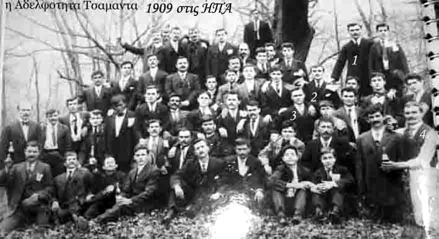 Τσαμαντιώτες στην Αμερική το 1909, Οι με αριθμό 1,2,3,4 είναι Κωτσαίοι, Κώστας, Γιάννης, Δημήτρης και Αλέξης
