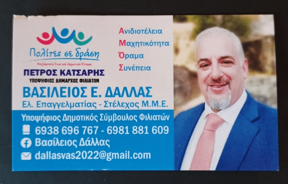 Ο χρήστης Βασίλειος Δάλλας είναι με το χρήστη ΔΆΛΛΑΣ ΒΑΣΊΛΗΣ Β’ ΠΡΟΦΙΛ στην πόλη Δήμος Φιλιατών.19 ώρ. · Με την ανακήρυξη της συμμετοχής στις επερχόμενες δημοτικές εκλογές του Οκτωβρίου από το πρωτοδικείο Ηγουμενίτσας του Συνδυασμού ΠΟΛΊΤΕΣ ΣΕ ΔΡΆΣΗ με υποψήφιο δήμαρχο τον Νυν αντιδήμαρχο Φιλιατών Κύριο Πέτρος Κατσάρης ανακοινώνω επισήμως την δική μου υποψηφιότητα του δημοτικού συμβούλου.Ζητώ την ψήφο σας να μου δώσετε το βήμα να ενώσω τις δυνάμεις μου με τους υπόλοιπους εκλεγέντες με Δήμαρχο τον Πέτρο Κατσάρη,ενός πετυχημένου Αυτοδιοικητικου που επί 9 χρόνια έχει επιδείξει έργο με συνέπεια σεβασμό αγάπη για τους συνδημότες και τον τόπο μας.Με αίσθημα ευθύνης ανιδιοτέλειας γνωρίζοντας σπιθαμή προς σπιθαμή την επικράτεια του Καλλικρατικού Δήμου Φιλιατων τους πολίτες,τους επαγγελματίες , επιχειρηματίες,αγρότες και τα προβλήματα της περιοχής θα επιδιώξω την επίλυση,καλυτέρευση, εξυπηρέτηση, προβλημάτων στον τόπο και στους συμπολίτες μας που εναγωνίως επιζητούν λύση.Θέλουμε και μπορούμε να είμαστε η συνέχεια ενός Πετυχημένου Δημάρχου που νοικοκυρεψε το δήμο και με ουσιαστικό έργο.Θέλουμε και μπορούμε να είμαστε αυτοί που θα προβάλλουν με ουσιαστικό τρόπο και προβολή την πανέμορφη ευρύτερη περιοχή του δήμου Φιλιατών.Θέλουμε να είμαστε το ξάγρυπνο μάτι για όλους σας,σας δείχνω την Αγάπη μου θέλω την Εμπιστοσύνη σας,σας ευχαριστώ!!Όλες οι αντιδράσεις:224Βασίλειος Δάλλας, Παπαδοπουλου Βουλα και 222 ακόμη