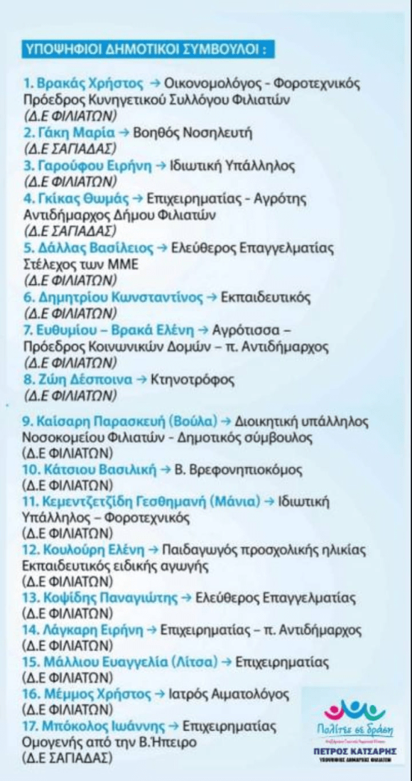 Με ιδιαίτερη χαρά σας παρουσιάζουμε τους υποψήφιους Δημοτικούς Συμβούλους της παράταξης «ΠΟΛΙΤΕΣ ΣΕ ΔΡΑΣΗ».