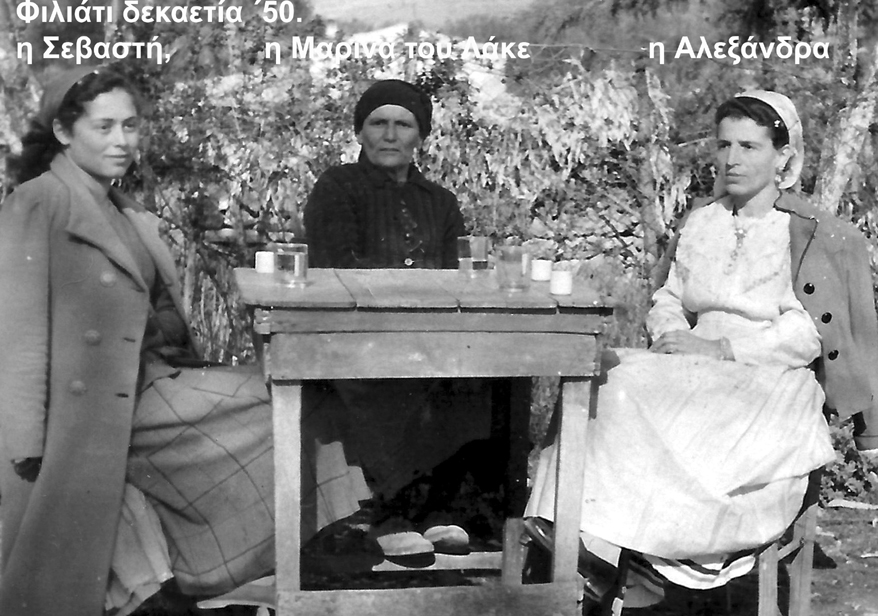 Η Σεβαστή- κόρη της Αθηνάς και αδελφή του Κώστα, ήταν η ομορφότερη Φιλιατιώτισσα τον καιρό εκείνο. Δίπλα η Μαρίνα Μητροχρόνη ήταν απο τις πιο φημισμένες φλυτζανούδες, όπως λίγο αργότερα έγινε και η Αλεξάνδρα!