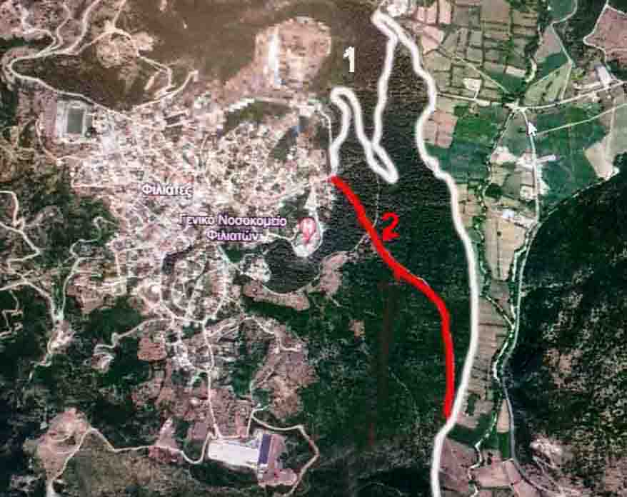 Ένας παλιότερος αναπτυξιακός στόχος για τους Φιλιάτες ήταν η συντόμευση των δρόμων, για Ηγουμενίτσα, Εγνατία κλπ. Είχε μάλιστα μελετηθεί να γίνει σε δυο στάδια. Το ένα στάδιο της συντόμευσης- στον κάμπο Παραποτάμου- πραγματοποιήθηκε εδώ και αρκετά χρόνια. Το δεύτερο στάδιο- να βγει ο δρόμος από Παραλία- Ελαία δεν έχει κοιταχθεί καν. Κι όμως οι προοπτικές υπήρξαν ευνοϊκές, ειδικά πρόσφατα- αφού βρέθηκαν 1.080.000 ευρώ για δημιουργία κυκλικού κόμβου αμφιβόλου αναγκαιότητας. Θα ήταν ευχής έργο να ακυρωθεί ο κυκλικός κόμβος και με αυτά τα λεφτά να γίνει η διάνοιξη του νέου δρόμου. Στο χάρτη, μπορεί να δει ο καθένας και να κρίνει την αξία της πρότασης. Ο δρόμος που σημειώνετε με κόκκινο δρόμος είναι μια διάνοιξη που έγινε πριν από χρόνια για να περάσει ύδρευση. Αυτή η διάνοιξη μπορεί να γίνει δρόμος, ο οποίος θα συντομεύει κατά 3 χιλιόμετρα, το Φιλιάτι με την Ηγουμενίτσα και τον υπό μελέτη δρόμο σύνδεση της Εγνατίας με την Αλβανία!!!