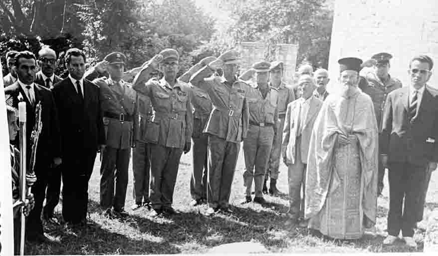 Φιλιάτες 1964, από αριστερά διέκρινα τον Έπαρχο Μέγα, τον αείμνηστο Χρυσόστομο Ζούλα- Δήμαρχο στη συνέχεια είναι ο Δ/τής του 628ΤΠ, ο Δ/τής ΤΕΑ Φιλιατών Φώτος Κίτσος ,ο Δ/τής Χωροφυλακής Κώνστας κλπ.