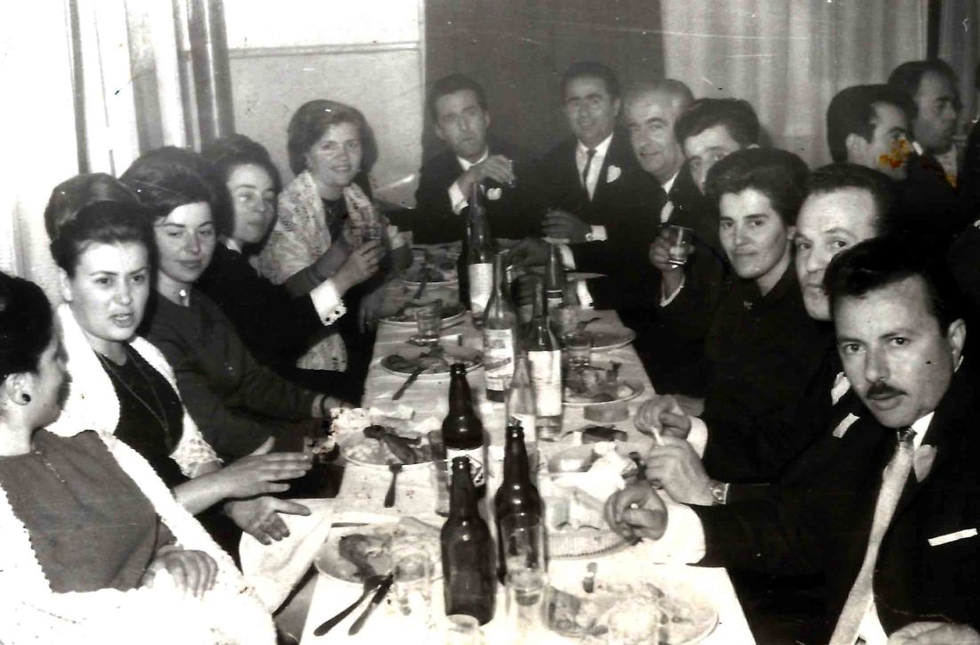 τους άντρες τους γνωρίσαμε όλους, απο αριστερά στην κορυφή του τραπεζιού ο Πίπη Καραμπίνας, μετά οι αείμνηστοι Νάσιος Καλαμπάκας, Στέφανος Σωτηρίου,. Γάκης Σωτηρίου. Προτελευταίος ο Βασίλης Βενέτης και τελευταίος ο Θέμης ο Κυριάκης. (απο το αρχείο της Έλενας Καλαμπάκα- την οποία κι ευχαριστούμε)