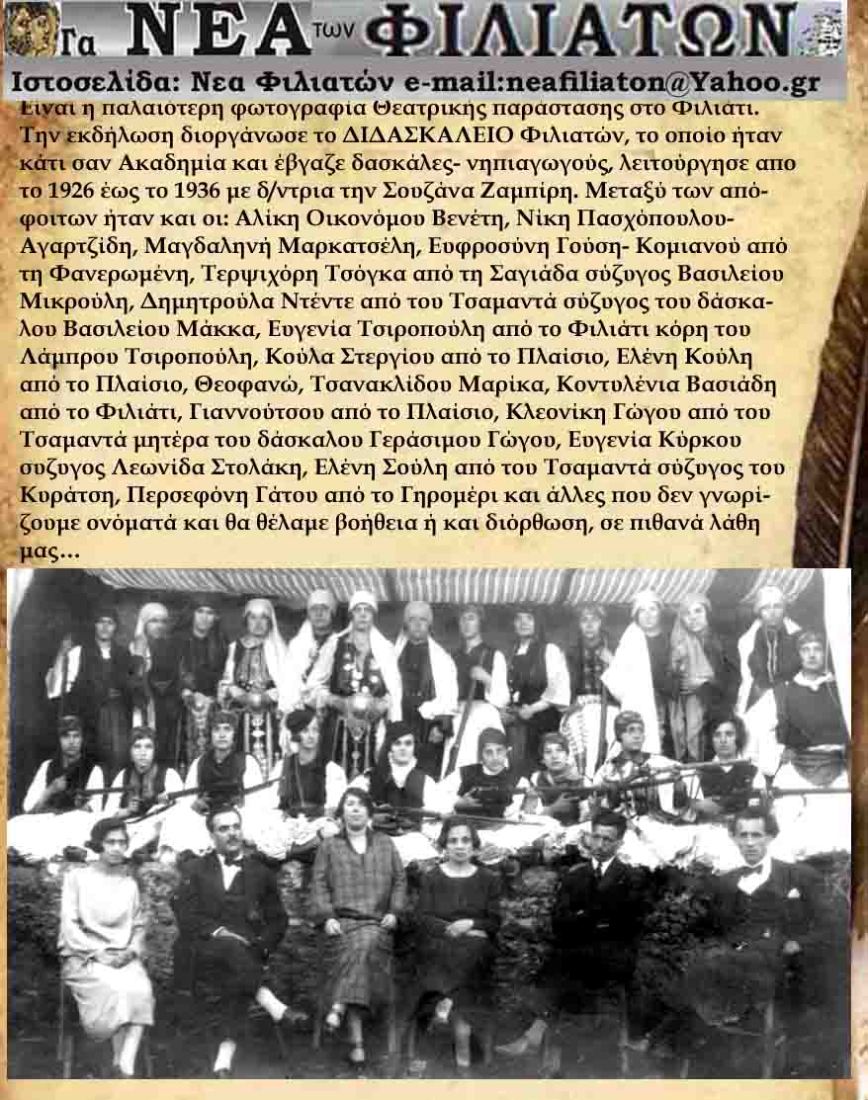 Ιστότοπος για τους Φιλιατες και οχι μονο- με νέα και παλιά, ειδήσεις και σχόλια, λαογραφικά και φωτογραφικά θέματα και την εφημεριδα μας ¨τα ΝΕΑ των Φιλιατών¨ σε ηλεκτρονική μορφή