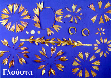 Ταφικά ευρήματα Κεφαλοχωρίου (Γλούστας): Σε έργα διάνοιξης που έκανε εκσκαφέας στη Γλούστα τις 14/7/ 1993, στον περίβολο του σπιτιού του Γιώργη Μούτσιου, βρέθηκε οικογενειακός τάφος της ελληνιστικής εποχής. Ο τάφος περιείχε έξι (6) ταφές και πλούσια κτερίσματα. Σαράντα τρία συνολικά πήλινα αγγεία συνόδευαν τις τέφρες των έξι νεκρών. Εννιά χρυσά στεφάνια από λεπτό έλασμα χρυσού και μια ταινία, σε σχήμα φύλλων βελανιδιάς, σφενταμιού και μυρτιάς, λάμπρυναν με ξεχωριστή τιμή τους νεκρούς.