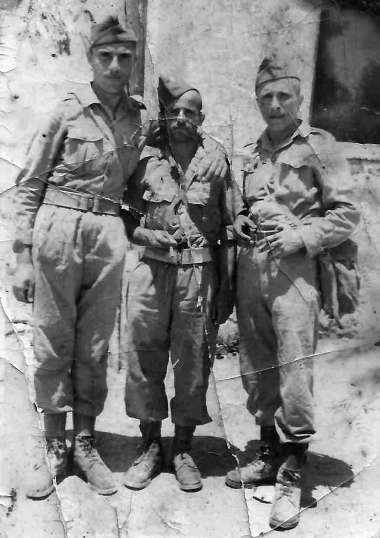 Φανταράκια το 1948, απο αριστερά αγνωστος για την ώρα, στη μέση Αριστοτέλης Στρουγγάρης και δεξιά Γιάννης Πούλος (απο το αρχείο του Τάκη Στρουγγάρη)
