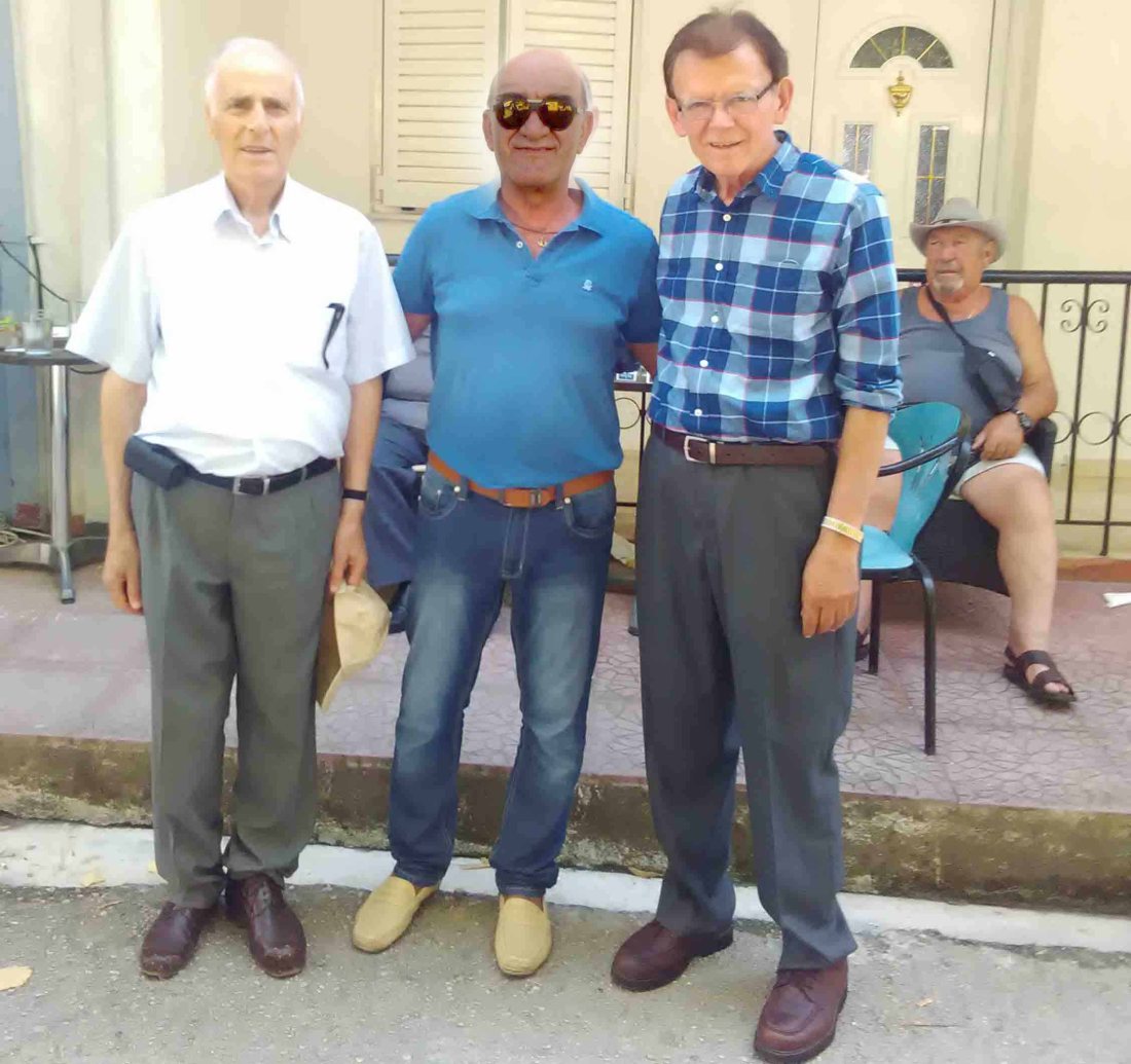 2015… συνάντηση με τους δασκάλους μου στα γράμματα και στη λαογραφία: στην εικόνα όρθιοι ο Χρήστος Τσέρης- γνωστός μας δάσκαλος και δεξιά ο Φώτη Γκάνιας- Καθηγητής χειρούργος Οφθαλμίατρος στις ΗΠΑ. Οι δυο τους έγραψαν το σπουδαίο σύγγραμμα για το γενεαλογικό του Βαβουρίου, του χωριού τους
