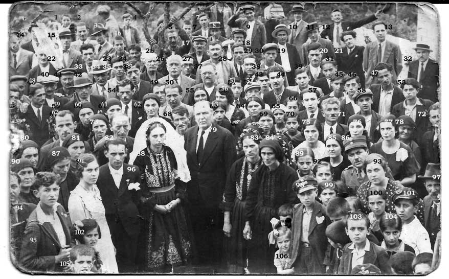 Μια ιστορική φωτογραφία γάμου στο Φοινίκι μου είχε δώσει ο Νίκος Γιώργου Σωτηρίου. Τον γάμο του παππού του Αντώνη Σωτηρίου με την Όλγα Στερνάρα το 1932 αν δεν κάνω λάθος. Ο κόσμος που βρέθηκε στο γάμο πολύς κι ο πειρασμός να καταγραφούν τα ονόματα τους μεγάλος. Είχα όμως την τύχει με το μέρος μου αυτό το καλοκαίρι, αφού ήρθαν μετά από χρόνια, στο Φιλιάτι οι αγαπημένοι θείοι: Δήμητρα- αδελφή της μάνας μου και Παναγιώτης Πέτρου με καταγωγή το Φοινίκι. Στα 99 του ο θείος Παναγιώτης διατηρεί πολλά από τα χαρίσματα της νιότης του και ιδιαίτερα αυτό της μνήμης. Έτσι με την βοήθειά του έφτιαξα τον παρακάτω πίνακα με τα ονόματα πολλών από όσους εικονίζονται στην ιστορική φωτογραφία του γάμου στο Φοινίκι. Κάποιους δεν τους αναγνώρισε, για κάποιους ίσως κάνει λάθος κι ακόμη δεν θυμήθηκε τα μικρά ονόματα ορισμένων- πάσα διόρθωση δεκτή!