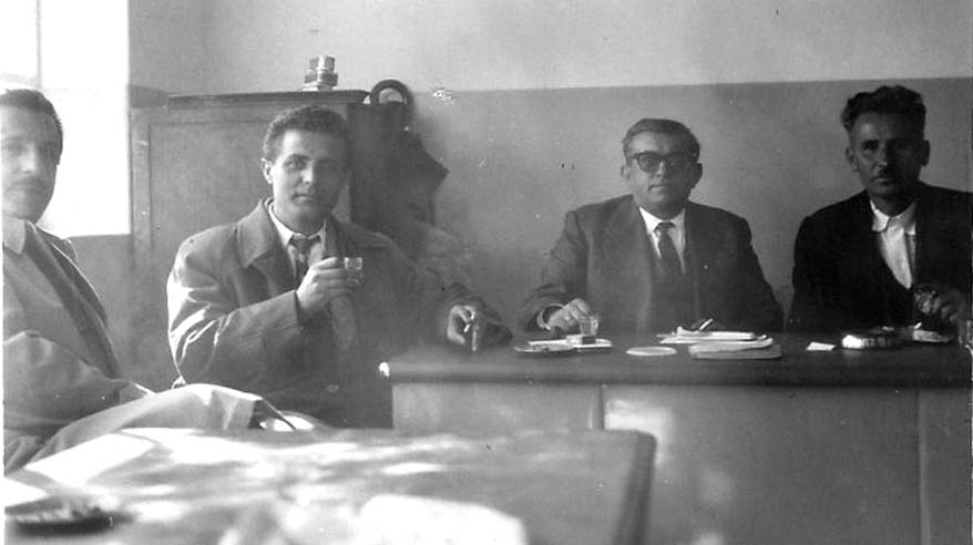 Στην επόμενη εικόνα πάλι του 1962 στο γραφείο οι δικηγόροι Νίκος Μπολόφης, Γάκης Κολιούσης με τον Χρήστο Στούμπη και τον κουμπάρο της οικογένειας Νάκο Καλαμπάκα.